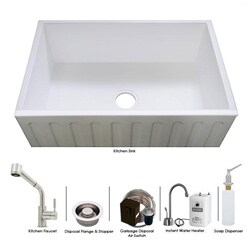 Westbrass Farmhouse Kitchen Sink Faucet And Hot Water Dispenser Combo.